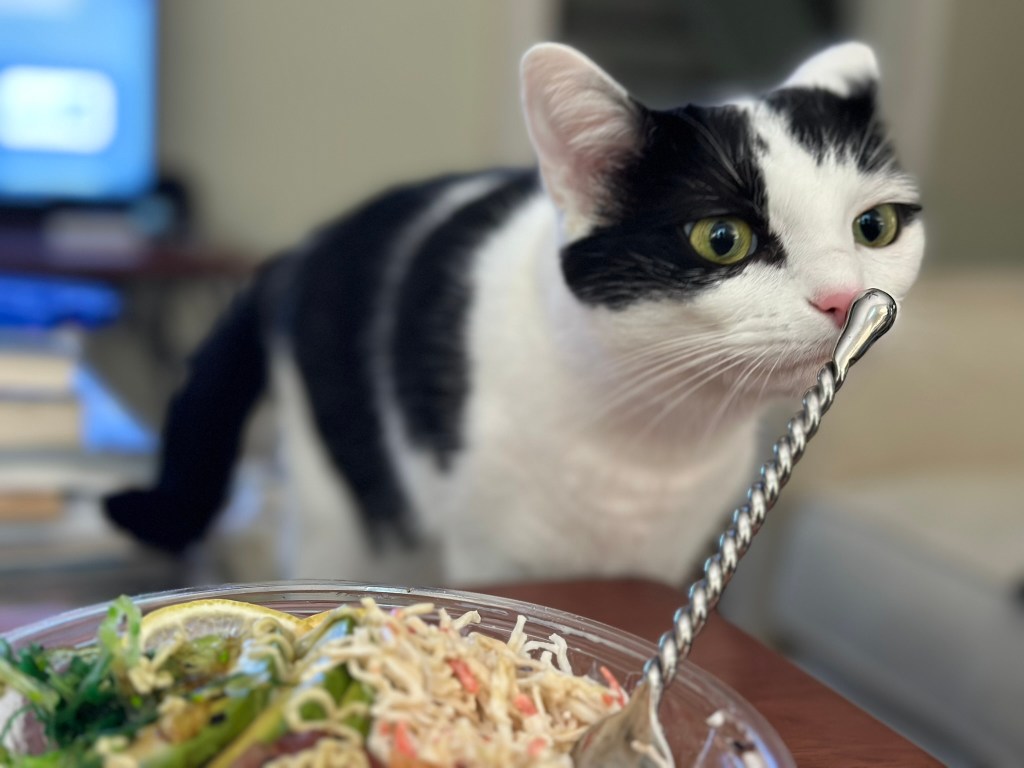 I admit that I am a sucker for sea chicken(shrimp) as my CatDad offers this to me regularly. I am a bit new to other species of fish. Salmon and tuna hold a special place in my heart and I see you have plenty of it in that bowl. I’ll move even closer to make sure that you know I’m here.