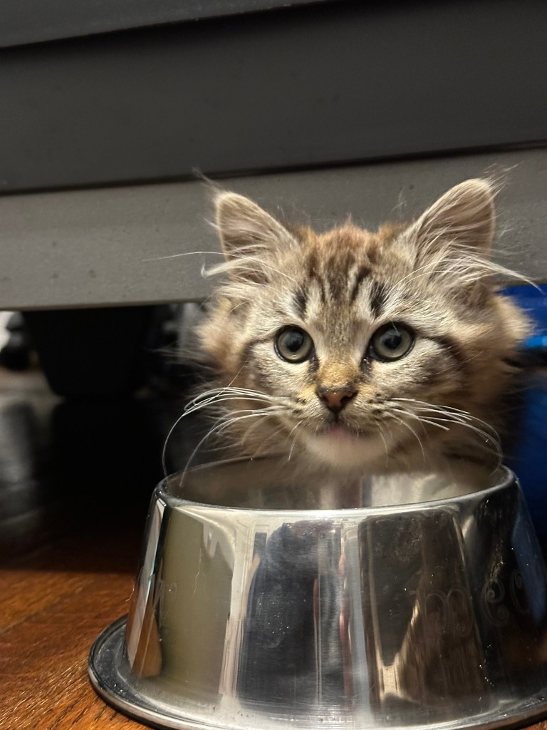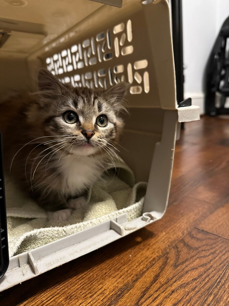 Everyone, meet Freya. (Pronounced fray-ya). She is my grand niece if we use human logic. I haven’t met her face to face yet and neither has my other sister Pima. We were told we cannot see her for a few days as she gets time to prepare for her future life at her furever home. As an adult, I have not been around such small fuzz balls that have razors. I hope she is nice.